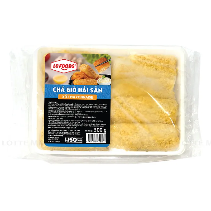 - Chả Giò Hải Sản Trái Cây Sốt Mayonaise LC Foods Gói 300G gồm 10 que, sản phẩm của công ty LC Foods. Chả Giò Hải Sản Trái Cây Sốt Mayonaise có vỏ bánh giòn tan cùng một chút biến tấu của phần nhân, vị ngọt thanh của trái cây và vị tươi ngọt của hải sản hòa quyện trong sốt mayonaise béo béo sẽ làm hài lòng thực khách, ngon hơn khi dùng nóng, ăn kèm với nương ớt.