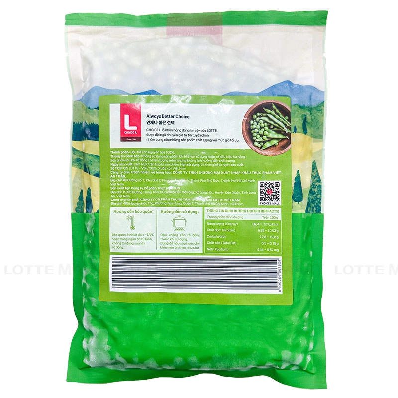 - Đậu Hà Lan Choice L là sản phẩm đông lạnh bằng công nghệ cấp đông nhanh IQF, giúp giữ nguyên màu xanh tươi, kết cấu giòn nhẹ và giữ được phần lớn dưỡng chất như vitamin, khoáng chất và chất xơ - tiện lợi sử dụng trực tiếp mà không cần rã đông.