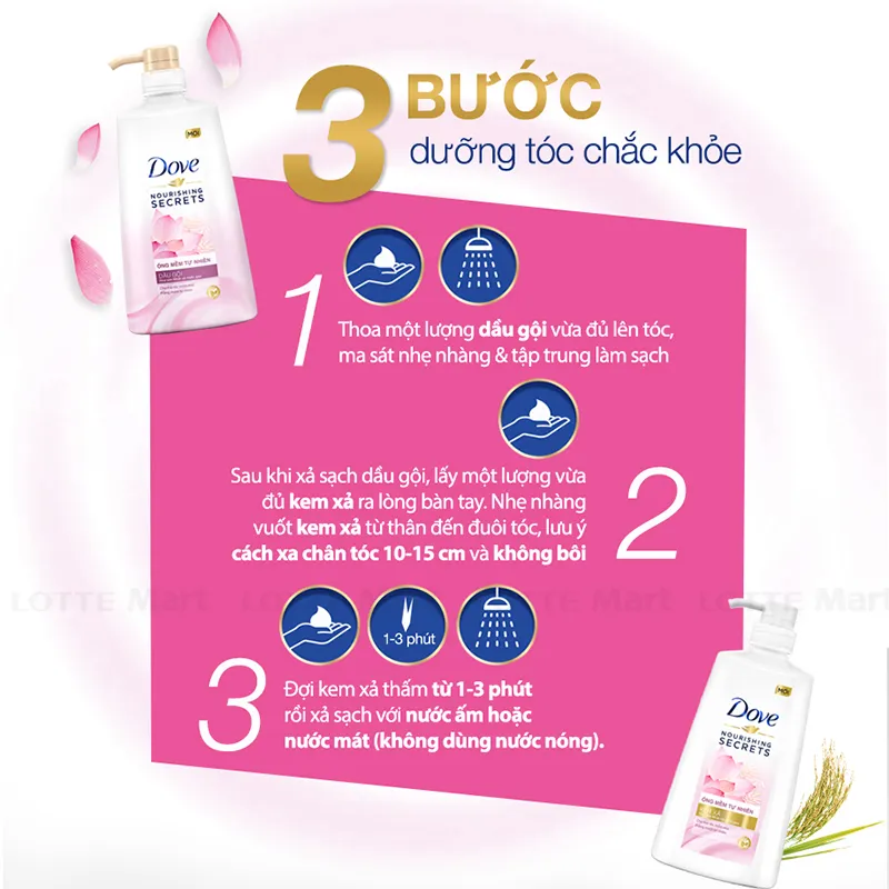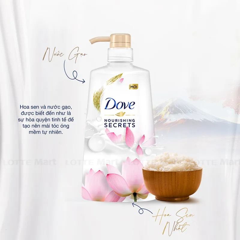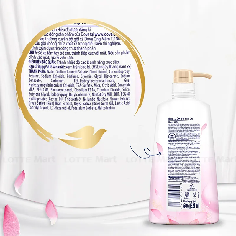 Dầu Gội Dove Hoa Sen Dưỡng Tóc Óng Mềm Tự Nhiên 640g