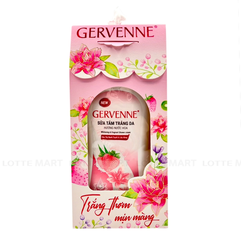 - Sữa Tắm Gervenne Trắng Da Hương Dâu Tây Bạch Tuyết và Lily Hồng là sữa tắm làm trắng da tăng cường các thành phần dưỡng da từ sữa dê và Vitamin B3, lưu lại hương thơm nước hoa ngọt ngào, quyến rũ.