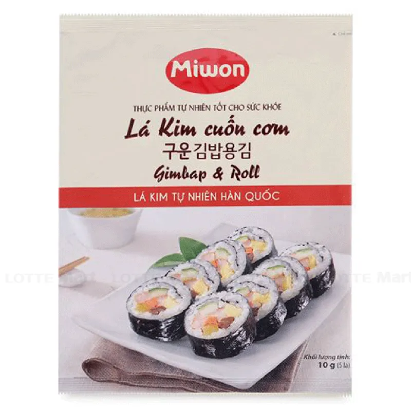 Sản phẩm được chế biến dựa trên dây chuyền hiện đại của Hàn Quốc nhằm đảm bảo giữ nguyên giá trị dinh dưỡng. Lá kim cuốn cơm đã được kiểm nghiệm an toàn vệ sinh thực phẩm. Thành phần: tảo biển, dầu ngô, dầu mè, dầu tía tô, muối tinh Hướng dẫn sử dụng: Dùng làm cơm cuộn, sushi,... Bảo quản: Để ở nơi khô thoáng, tránh ánh nắng trực tiếp, đậy gói lại sau khi dùng.