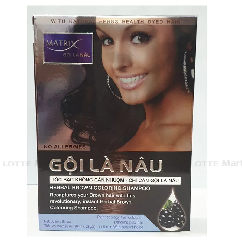 Dầu Gội Matrix Gội Là Nâu Hộp 3 Gói x 30ml làm thay đổi màu tóc và che phủ những sợi tóc bạc một cách nhanh chóng, dễ dàng mà không cần nhuộm.