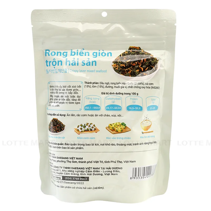 Hướng dẫn sử dụng: Có thể ăn trực tiếp hoặc rắc lên cơm, cháo, súp,...Xuất xứ: Hàn Quốc. Sản xuất tại: Việt Nam.