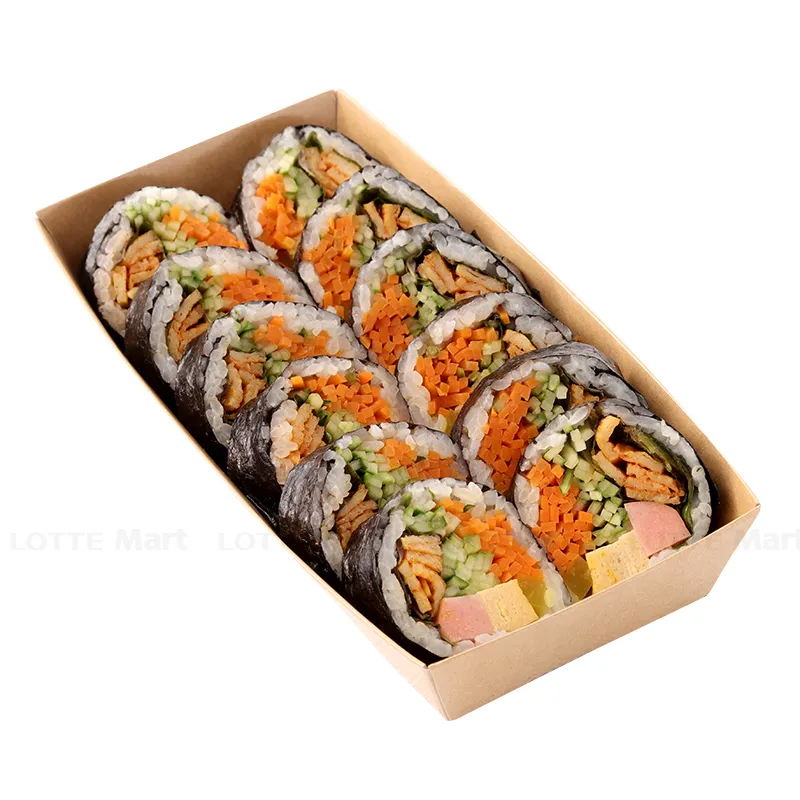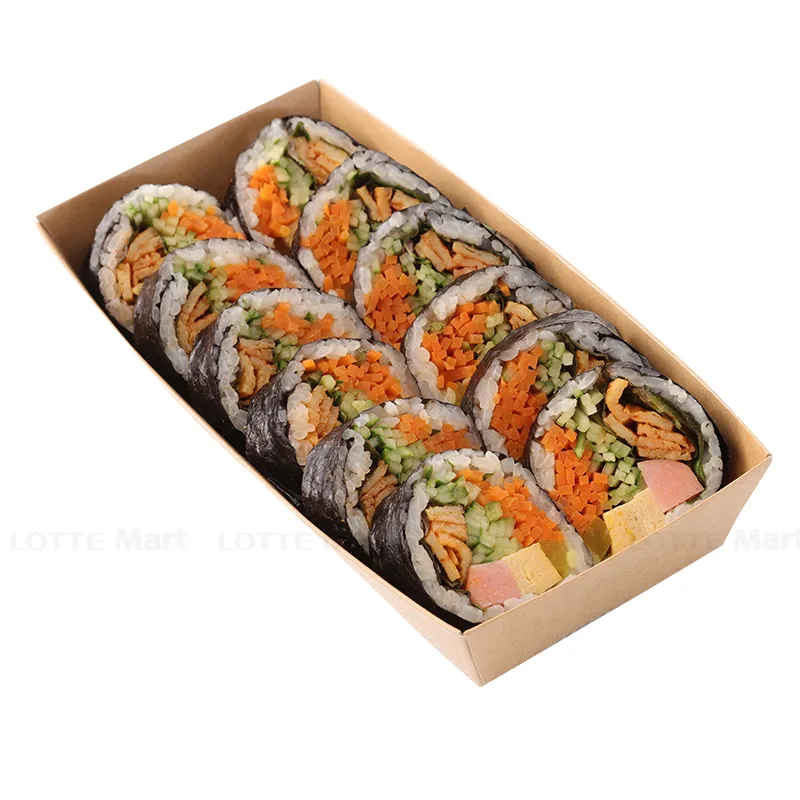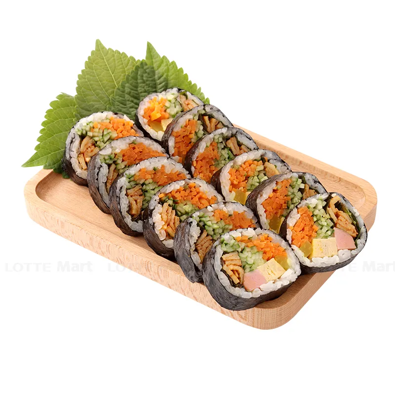 - Kimbap Chả Cá Hàn Quốc Size Lớn được làm từ cơm trắng dẻo dễ ăn, đảm bảo cung cấp đầy đủ chất dinh dưỡng cho một ngày làm việc thật năng lượng khi kết hợp giữa trứng chiên, chả cá xốt ớt, xúc xích, củ cải vàng, thanh cua cùng với lớp rong biển được thoa bóng dầu mè thơm lừng chuẩn vị Hàn.