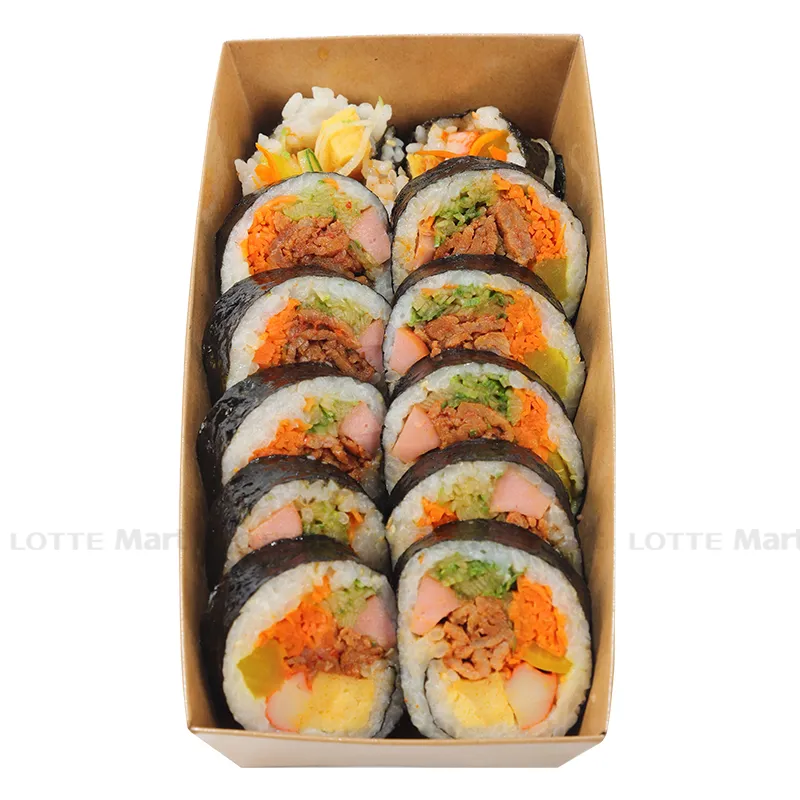 - Kimbap là món ăn phổ biến nhất của người Hàn, tại LOTTE Mart bạn sẽ được thưởng thức Kimbap ‘chuẩn Hàn’. Kimbap bò bulgugi được sử dụng công thức sốt độc quyền từ đầu bếp người Hàn tạo ra món ăn mang âm hưởng Hàn đúng điệu.