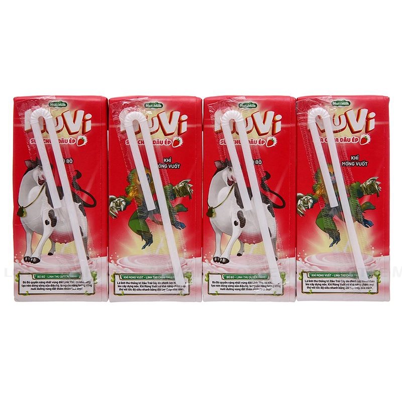 Sữa Chua Uống Nuvi Vị Dâu Lốc 4 Hộp 180ml