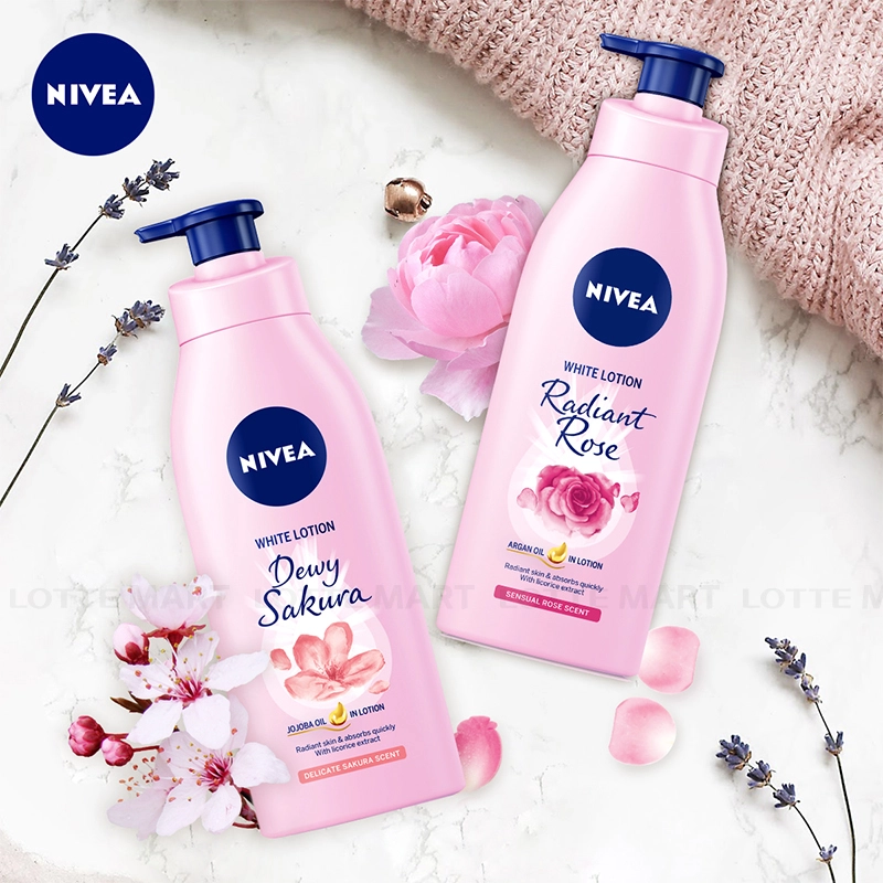 - Sữa Dưỡng Thể Nivea Dưỡng Trắng Da Radiant Rose Chai 350ml có thành phần chính là tinh dầu thiên nhiên Jojoba, giúp dưỡng ẩm sâu cho da, dưỡng da căng mượt tức thì.
