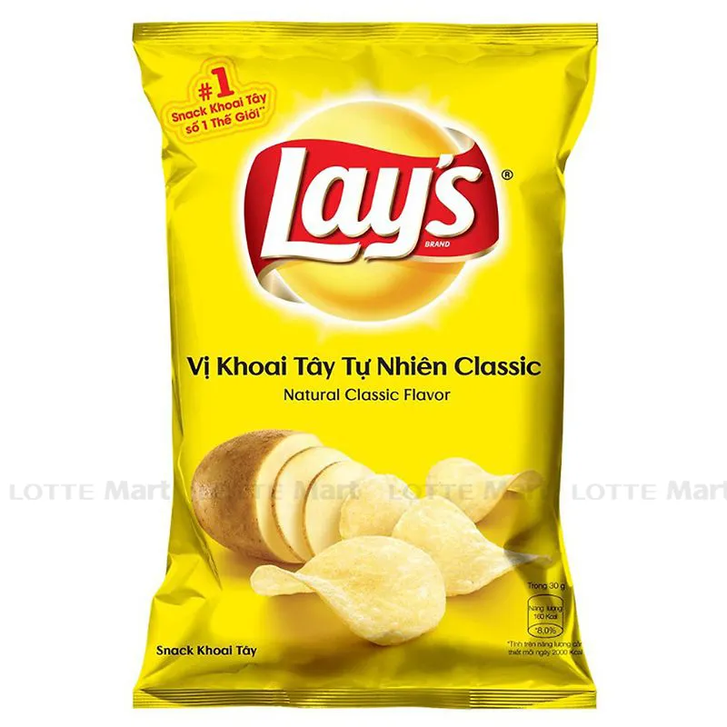 Snack khoai tây vị khoai tây tự nhiên Lay’s mang đến những miếng khoai tây tươi ngon hoàn hảo với hương vị vô cùng hấp dẫn.