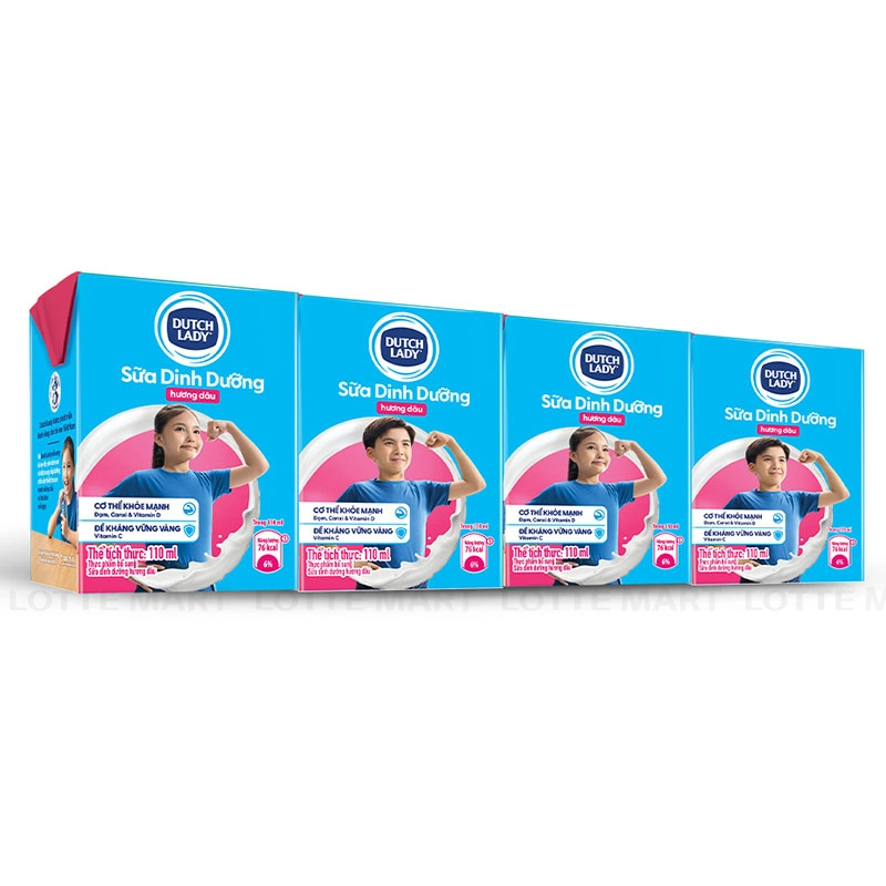 Sữa Tươi Tiệt Trùng Dutch Lady Vị Dâu 110ML (Lốc 4 Hộp)