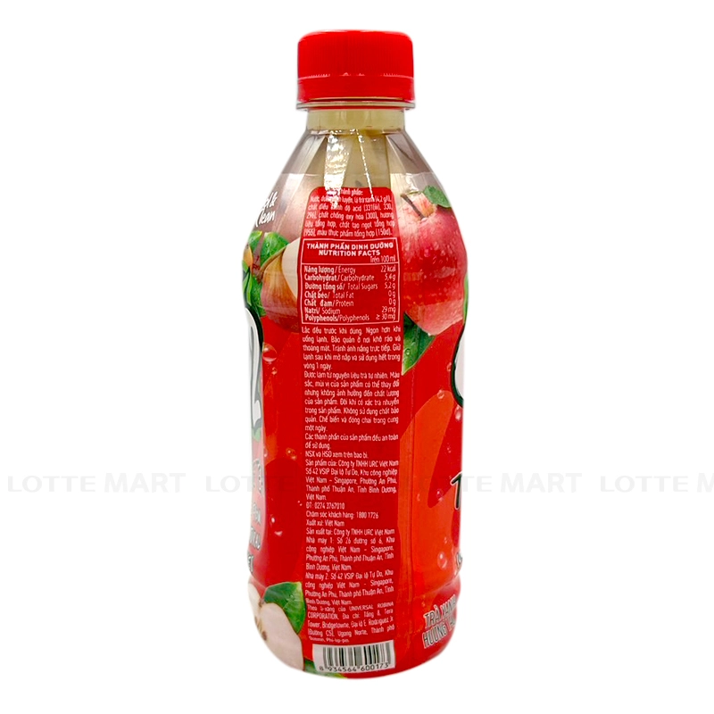 - Nước, đường tinh luyện, lá trà xanh (4.2g/l), chất điều chỉnh độ acid (330, 331(iiii), 296), hương liệu tổng hợp (táo), màu tổng hợp (150d), chất tạo ngọt tổng hợp (955).