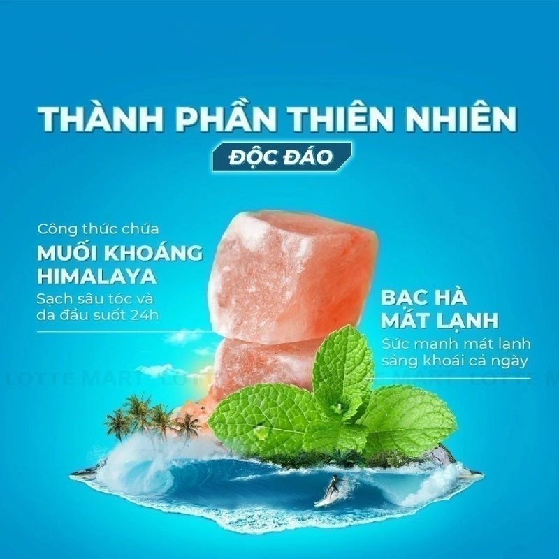 Dầu gội Sạch Gàu X-Men Clean & Fresh 24h Sạch Sâu chứa công thức đột phá nổi bật từ Muối Khoáng Himalaya & Bạc Hà mát lạnh làm sạch sâu tóc và da đầu suốt 24h.