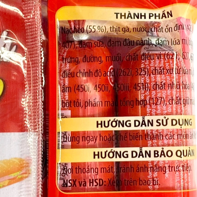 Thành phần: Thịt nạc heo (55%) , mỡ heo, đường, muối, tiêu, chất bảo quản, chất ổn định, chất điều vị...