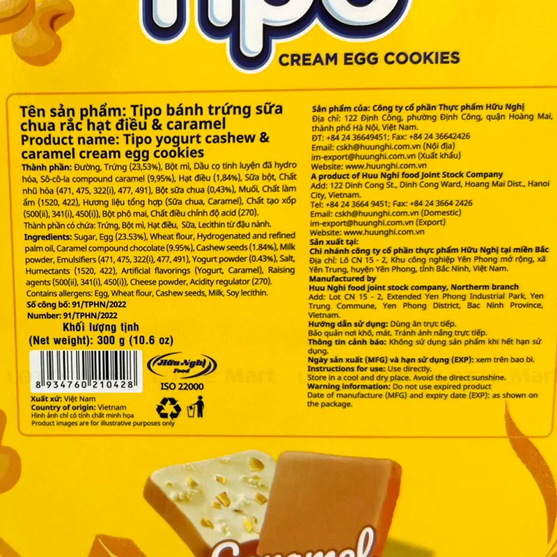- Bánh Tipo Sữa Chua Hạt Điều Caramel Hộp 250G là sản phẩm kết hợp hoàn hảo giữa lớp kem sữa mềm mịn và bánh trứng nướng giòn rụm theo công thức độc quyền của Hữu Nghị. Với sự kết hợp giữa sữa chua, hạt điều và caramel tạo nên lớp kem có hương vị thơm, ngọt, dễ ăn, tốt cho sức khỏe, đây chính là cầu nối giúp bạn chia sẻ những khoảnh khắc ngọt ngào cùng những người thân yêu. Bánh cũng giúp cung cấp một nguồn năng lượng vừa đủ để bổ sung lại những mệt mỏi sau thời gian dài học tập và làm việc.