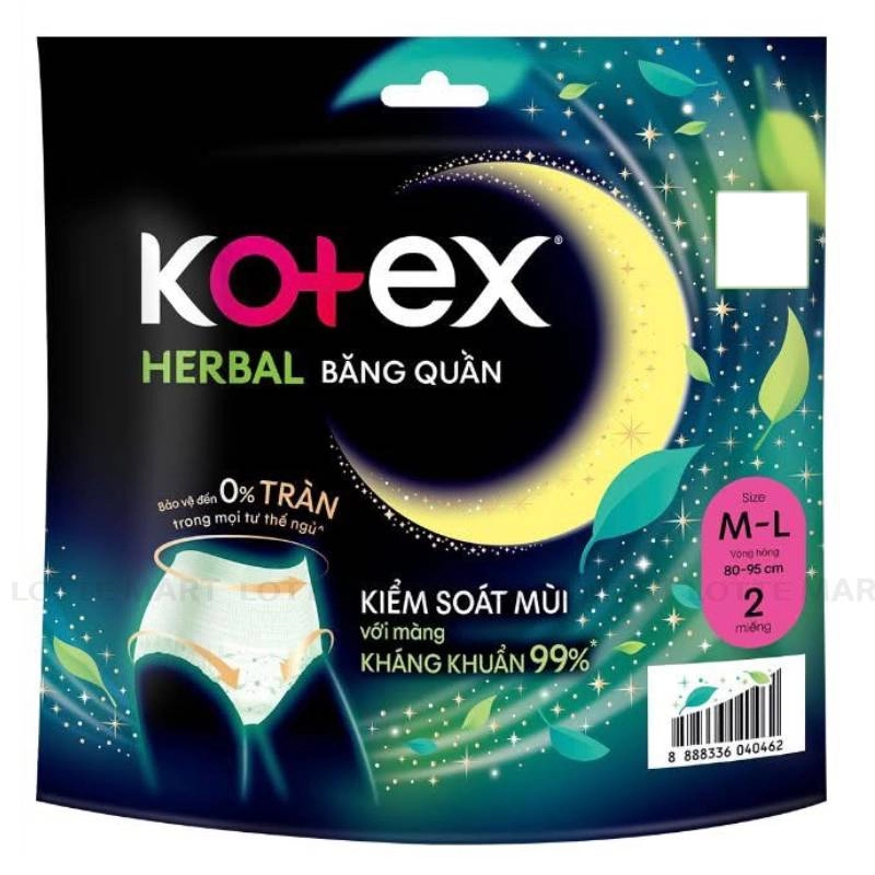 Băng Vệ Sinh Dạng Quần Kotex Thảo Dược Kháng Khuẩn Size M-L Bịch 2 Miếng