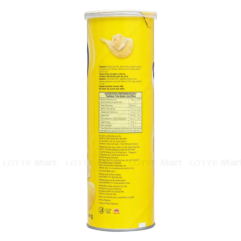 Thành phần: Khoai tây, tinh bột khoai tây, dầu thực vật, bột gia vị hương phô mai, muối, đường, glucose, chất điều vị