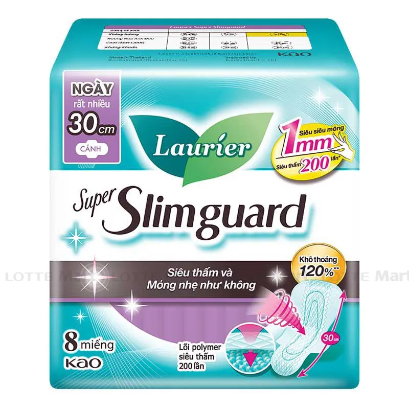 Băng Vệ Sinh Laurier Siêu Mỏng Bảo Vệ 30cm Gói 8 Miếng