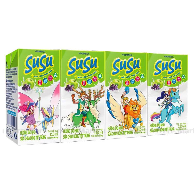 Sữa Chua Uống Tiệt Trùng Vinamilk Susu Hương Táo Nho Lốc 4 Hộp 110ml