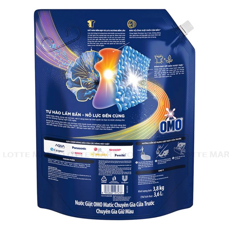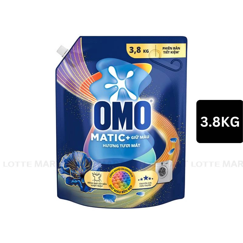 Nước Giặt OMO Matic Giữ Màu Hương Tươi Mát Dành Cho Máy Giặt Cửa Trước Túi 3.8kg