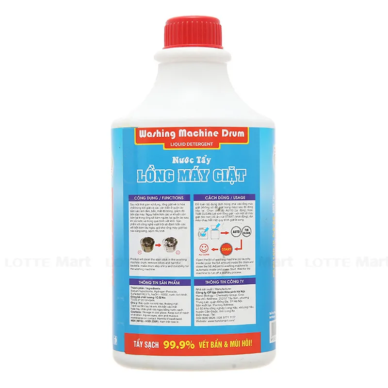 - Nước Tẩy Lồng Máy Giặt Hando Chai 800ml với công nghệ vượt trội sẽ đánh bẩn các vết bám lâu ngày, giữ cho lồng máy giặt lúc nào cũng sáng, sạch như mới. Nước tẩy lồng máy giặt Hando là thương hiệu nước tẩy lồng giặt hiện đại, sạch nhanh, hiệu quả vượt trội.