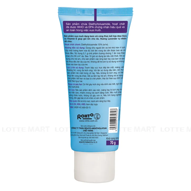 - Kem Chống Muỗi Rohto Remos Hương Lavender Chai 70G của thương hiệu Rohto có dạng kem đặc sẽ giúp bảo vệ gia đình bạn chống lại các loại các loại côn trùng gây hại, đặc biệt là muỗi, giúp loại đi những mối nguy cơ nhiễm bệnh từ côn trùng cắn đốt.