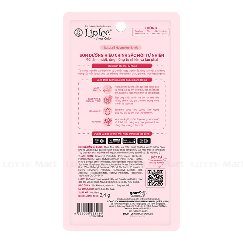 - Son Dưỡng Môi LipIce Sheer Color Natural Thỏi 2g là sản phẩm không thể thiếu với các bạn gái, với dây chuyền sản xuất tiên tiến đem đến cho bạn gái sản phẩm tối ưu nhất.