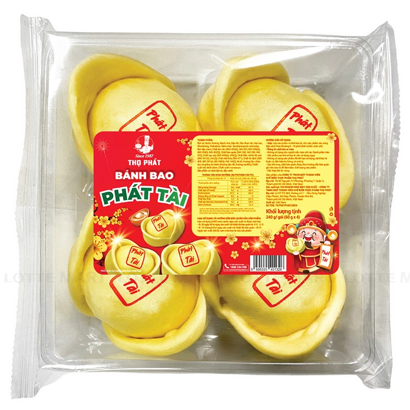 - Được sản xuất đặc biệt cho mùa Tết, Bánh Bao Thọ Phát Phát Tài là món quà tết đầy ý nghĩa, mang lại niềm vui và hạnh phúc, là sự lựa chọn tuyệt vời cho những dịp sum vầy.