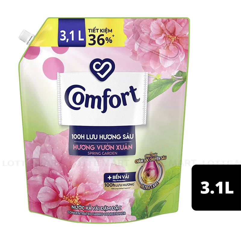 Nước Xả Vải Comfort Hương Vườn Xuân với công thức chăm sóc quần áo chuyên sâu Ultra Care độc quyền và công nghệ lưu hương bền lâu, nước xả vải Comfort sẽ thấm sâu vào từng sợi vải và tạo nên lớp màng bảo vệ, giúp áo quần luôn tươi màu, bền vải và lưu hương vườn xuân bền lâu trên áo quần suốt 100h.