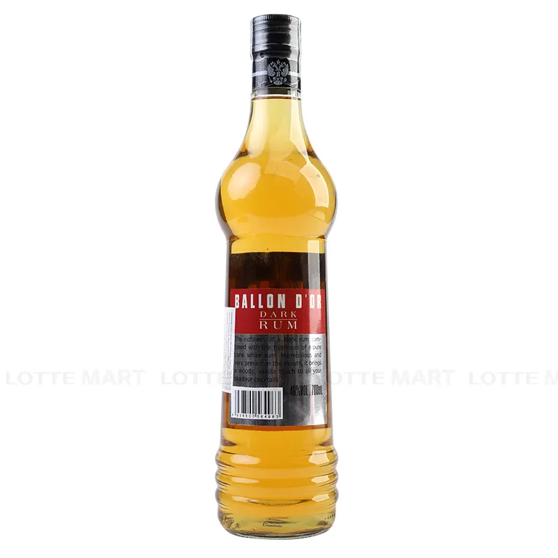 - Rượu Rum Ballon D'Or Dark 40% ABV Chai 700ml có màu gỗ đậm, là minh chứng cho quá trình ủ rượu kéo dài trong thùng gỗ sồi. Rượu Rum đen kích thích các giác quan với các lớp caramel, mật đường và trái cây sấy khô, để lại dư vị ấm áp kéo dài.