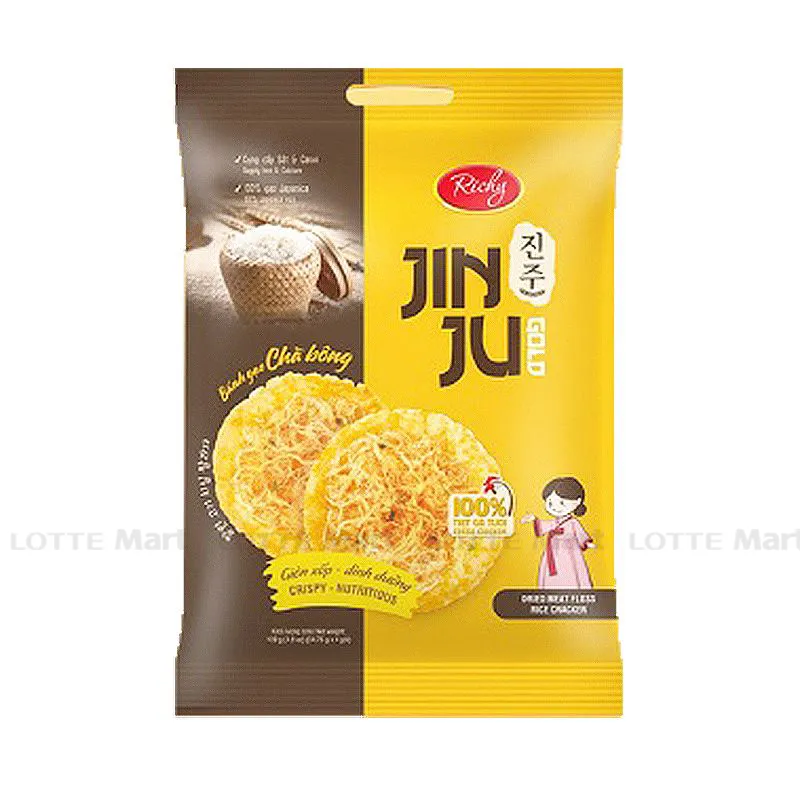 - Bánh Gạo Jinju Chà Bông Gói 168G với gói to hơn, thiết kế mới lạ cực kì bắt mắt, bánh gạo Jinju chà bông giúp bạn có bữa ăn ngon mọi lúc mọi nơi, hương vị giòn xốp đẫm chà bông, khi ăn nghe tiếng giòn rụm vui tai. Bánh phù hợp với tất cả mọi người từ trẻ nhỏ đến người lớn.