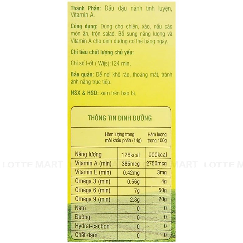 Thành phần: Dầu đậu nành tinh luyện, Vitamin A.
