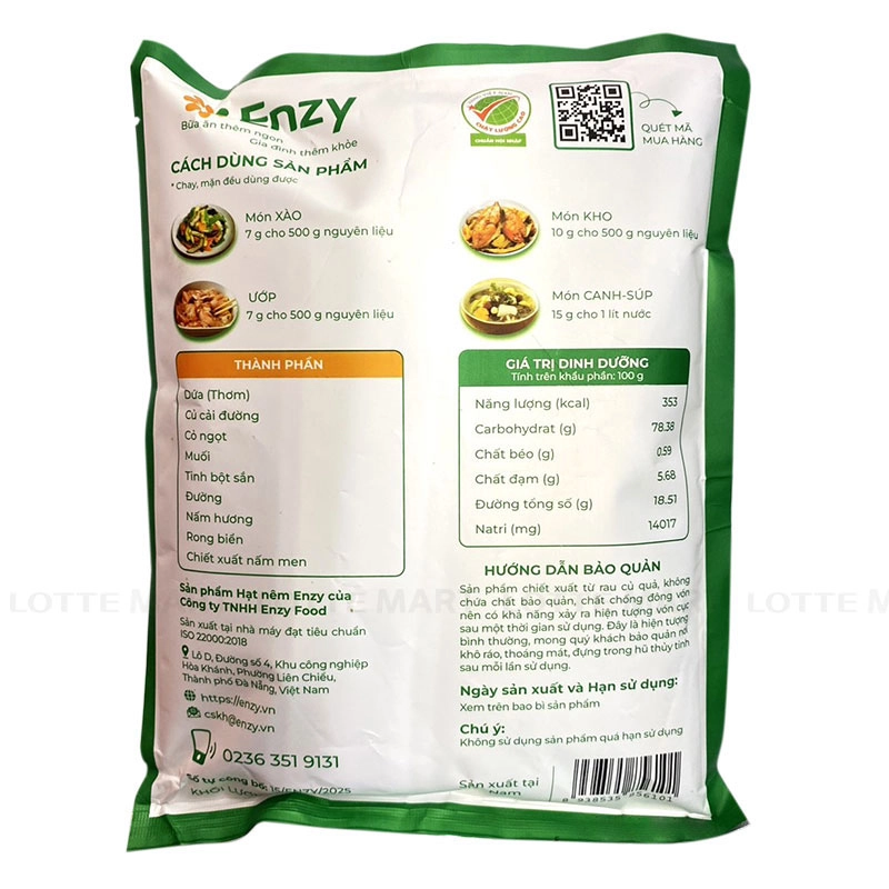 - Hạt Nêm Rau Củ Enzy Tự Nhiên được chế biến từ thành phần hoàn toàn từ thiên nhiên, không chứa mì chính (bột ngọt E621), các loại bột siêu ngọt, không phẩm màu và chất bảo quản.