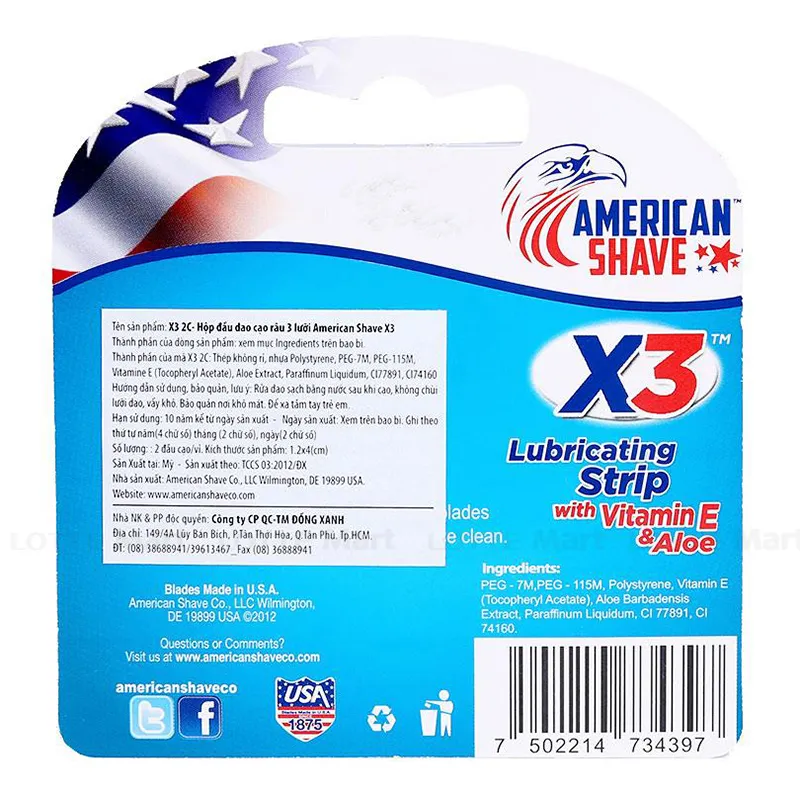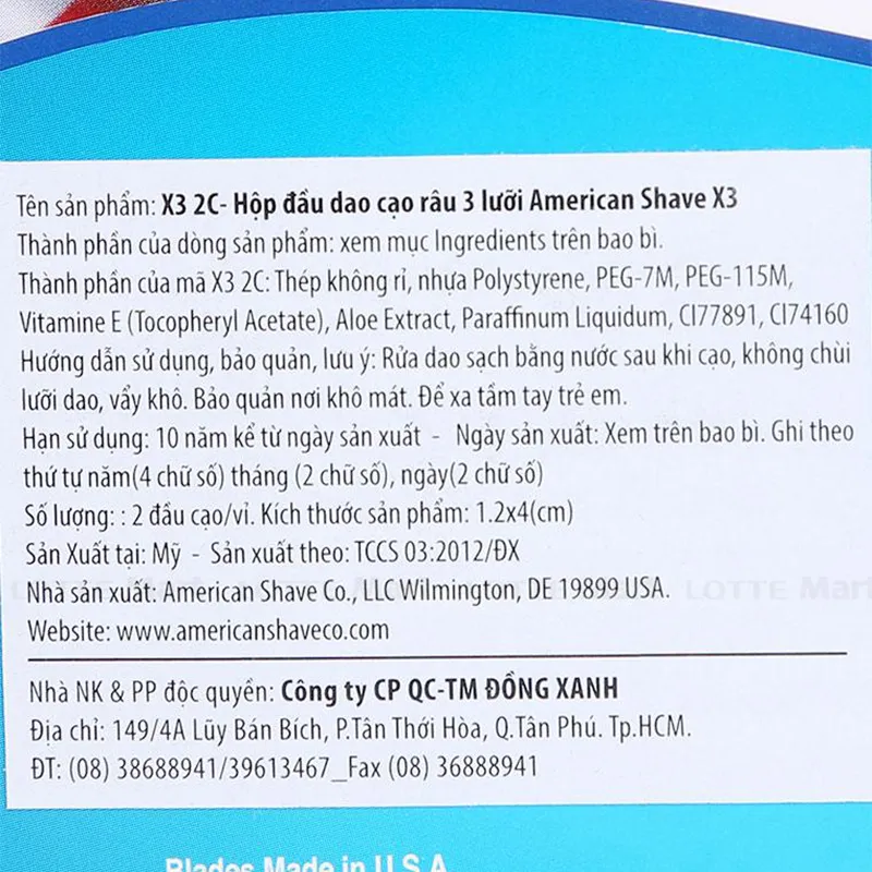 - Hộp Đầu Dao Cạo Râu 3 Lưỡi American Shave là sản phẩm không thế thiếu của nam giới, giúp cạo sạch chân râu một cách nhanh chóng, giảm khả năng trầy xước và tổn thương bề mặt da, mang đến vẻ ngoài điển trai và lịch lãm.