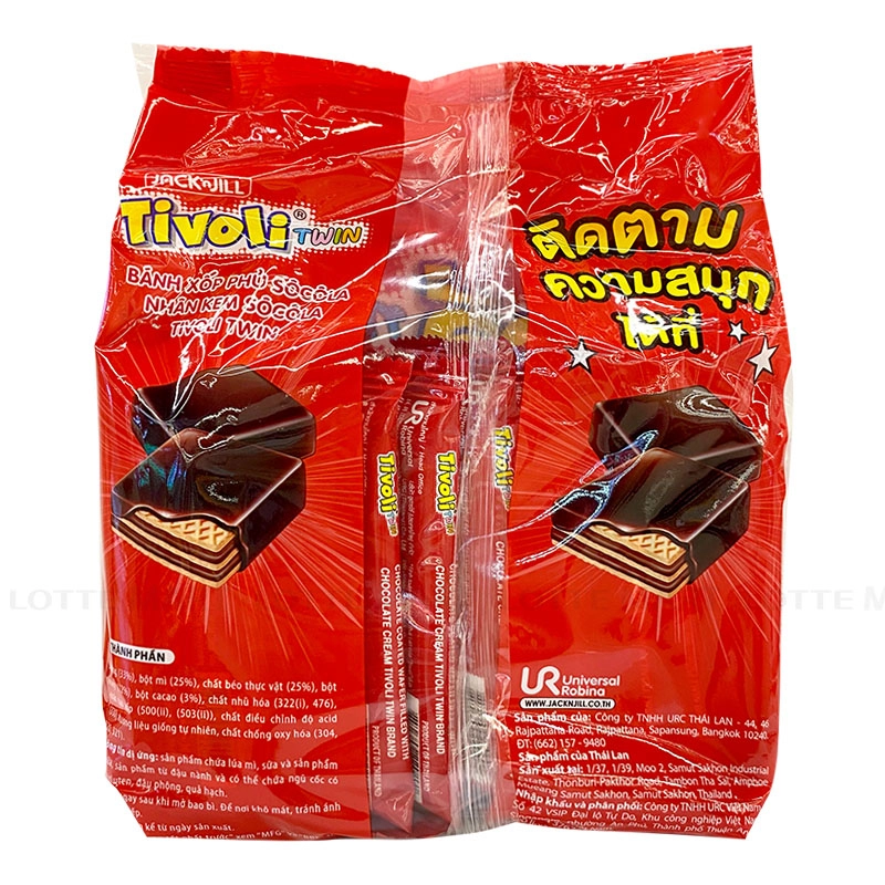 Bánh Xốp Jack 'n Jill Tivolo Socola Phủ Socola có lớp vỏ ngoài cùng dày dặn được phủ ngập socola, tạo cảm giác giòn nhẹ khi vừa đưa vào miệng.