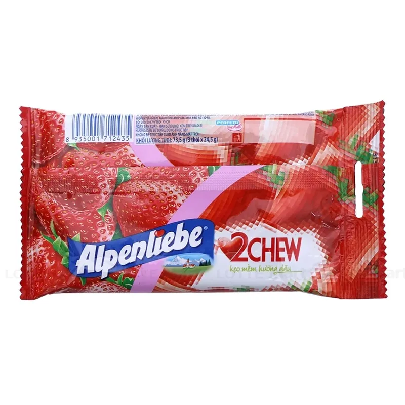Kẹo mềm hương dâu 2Chew Alpenliebeđược sản xuất theo công thức đặc biệt, tạo nên những chiếc kẹo mềm hấp dẫn. Sản phẩm có vị mềm ngọt, thơm ngon rất độc đáo.