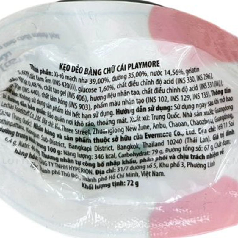 Kẹo Dẻo Chữ Cái Playmore là loại kẹo có tạo hình độc đáo với hình dạng các chữ cái, giúp các bé vừa ăn vừa học.