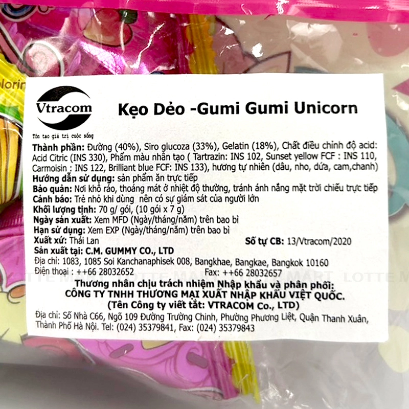 - Môi gói kẹo Gumi Gumi Unicorn gồm 10 túi nhỏ bên trong, được đóng gói trong các bao bì nhỏ gọn, tiện lợi, dễ dàng mang theo và chia sẻ. Bao bì thường có thiết kế bắt mắt và sinh động, hấp dẫn trẻ em.