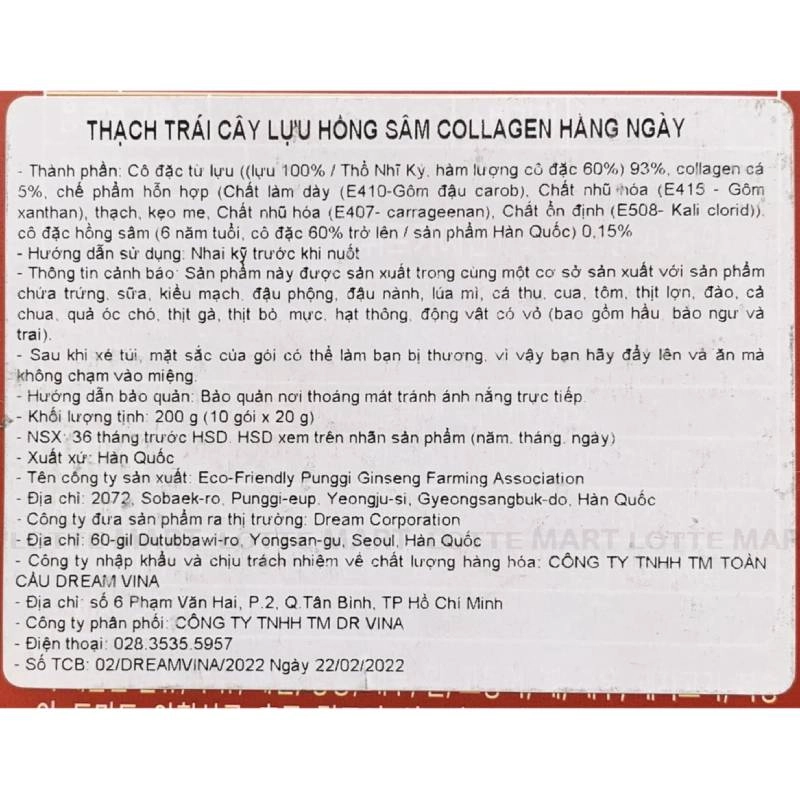 Hộp 10 Gói Thạch Lựu Hồng Sâm Collagen Dream Everyday Hàn Quốc 20G
