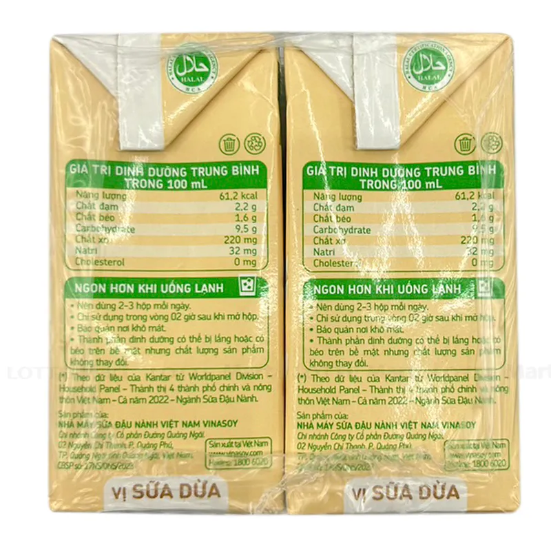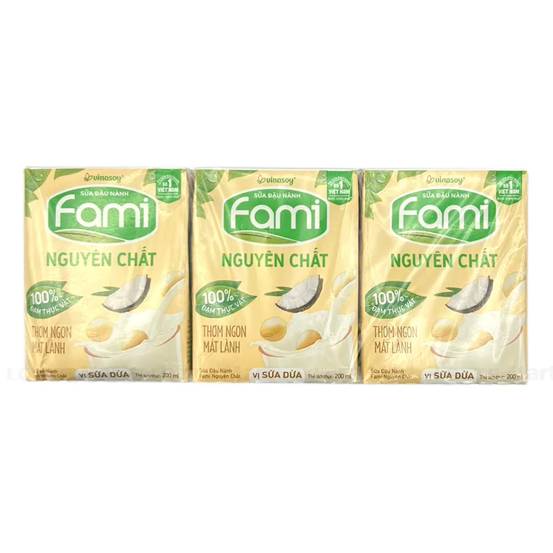 Sữa Đậu Nành Vinasoy Fami Nguyên Chất Vị Sữa Dừa Lốc 6 Hộp 200ml
