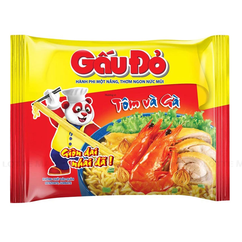 Mì Gấu Đỏ Tôm Và Gà lựa chọn hấp dẫn không thể bỏ qua đặc biệt là những ngày bận rộn cần bổ sung năng lượng nhanh chóng, đủ chất dinh dưỡng cơ bản.