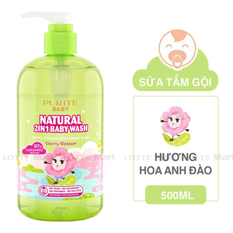 Sữa Tắm Gội Trẻ Em Purité Baby Natural 2In1 Hoa Anh Đào 500ml