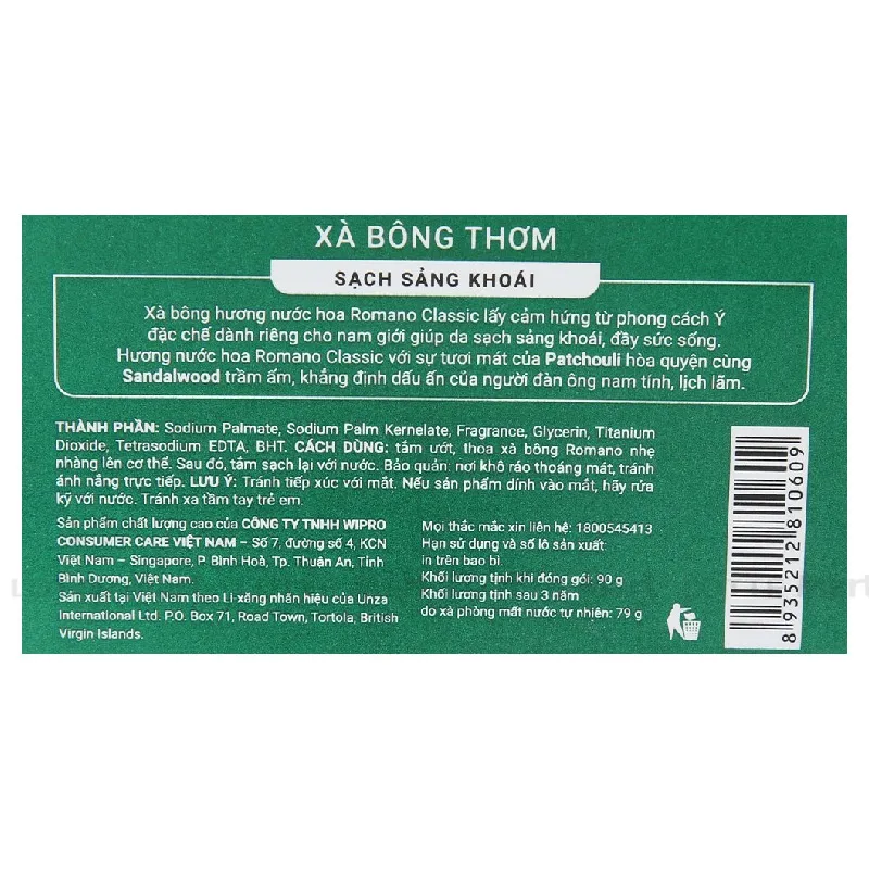 Xà Bông Thơm Romano Classic 90G đem đến một làn da thật sạch, đầy sức sống. Với hương thơm độc đáo, Romano Classic tạo cho bạn một phong cách lịch lãm, mạnh mẽ đầy quyến rũ.