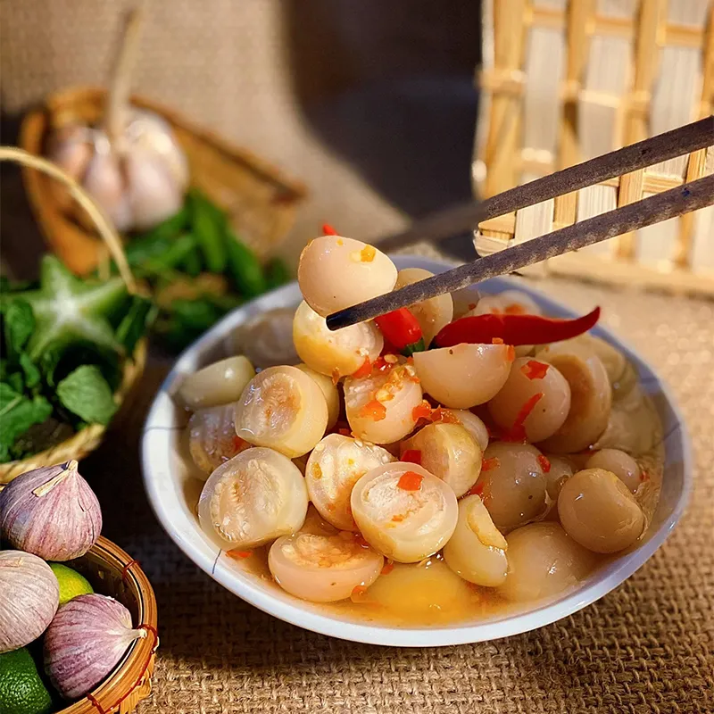 Hướng dẫn sử dụng: Dùng trực tiếp khi mở nắp, dùng với bún, cơm, rau sống hoặc ăn kèm với thịt luộc. Bảo quản: Bảo quản mát sau khi mở nắp sử dụng. Nơi sản xuất: Việt Nam.