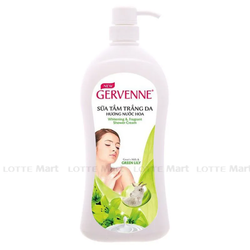 Sữa Tắm Gervenne Trắng Da Hương Nước Hoa Lily Xanh Chai 1.2L chứa sữa dê giúp nuôi dưỡng da đồng thời làm sáng màu da, Vitamin B3 giúp trắng da, chất chống nắng giúp bảo vệ da khỏi tác hại của tia cực tím.