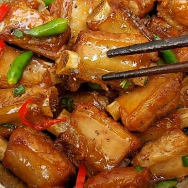 Sườn già là nguyên liệu quen thuộc, dễ kết hợp trong bữa cơm gia đình hằng ngày.