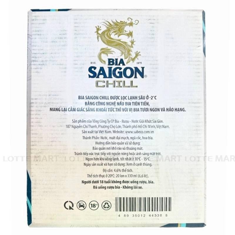 Thùng 20 Lon Bia Saigon Chill 4.6% ABV 330ml