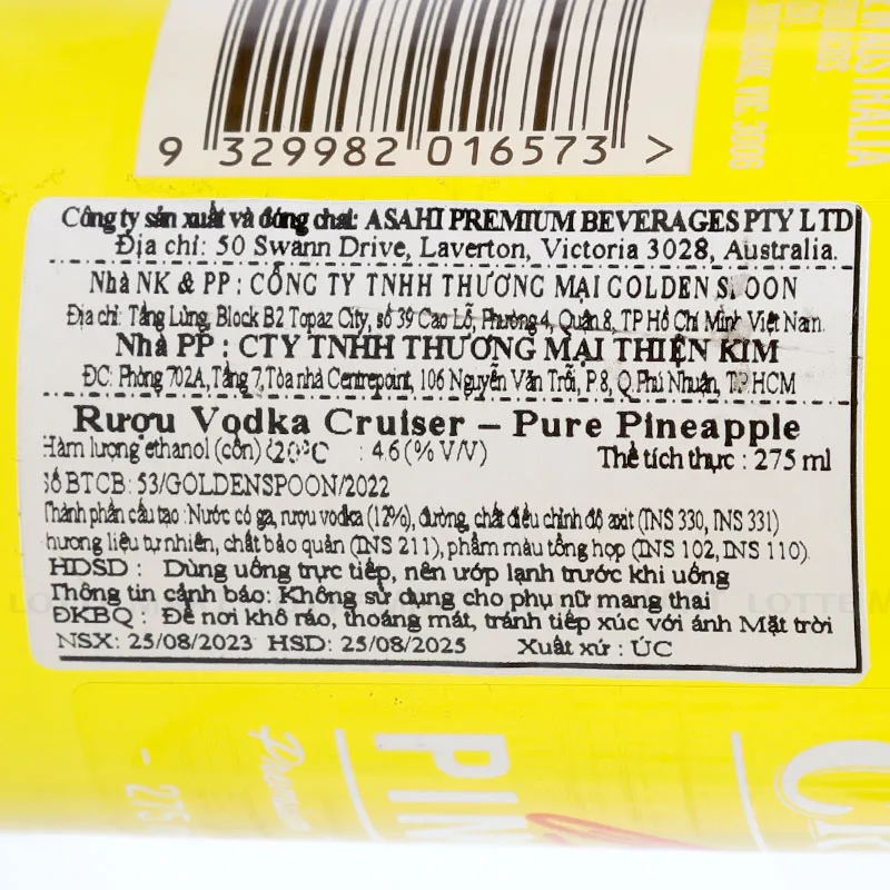 - Vodka Cruiser Pure Pineaplle 4.6% ABV Chai 275ml là thương hiệu đã không quá xa lạ với những ai yêu mến các loại bia trái cây. Nếu các loại bia dành cho quý ông với nồng độ cồn mạnh, thì Vodka Cruiser dành cho phái nữ có nồng độ cồn nhẹ nhàng hơn chỉ với 4.6%.