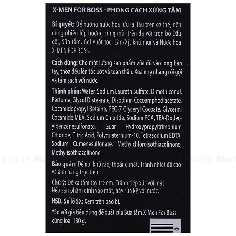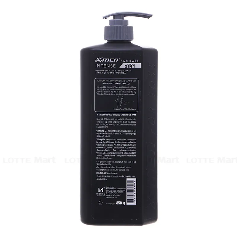 - Dầu Gội Nước Hoa X-Men For Boss Intense 650g là sự kết hợp từ gỗ đàn hương và hổ phách, X-Men Intense tạo nên một mùi hương trầm đầy nội lực đại diện cho phong thái chắc chắn, một dấu ấn đậm nét của người đàn ông thành công, luôn kiên định với mục tiêu của mình.