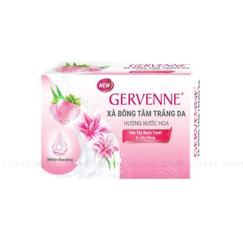 Xà Bông Cục Gervenne Hương Dâu Tây Bạch Tuyết và Lily Hồng 90g có công thức từ sữa dê và Vitamin B3 cho làn da của bạn mềm mịn và trắng sáng như lụa.