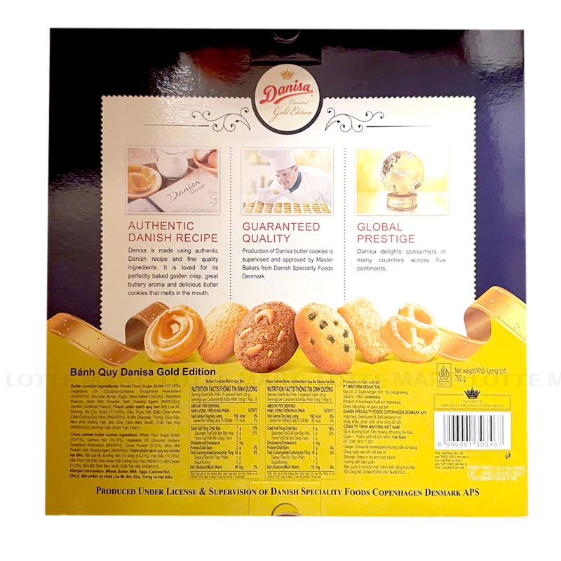 Bánh Quy Bơ Danisa Gold Edition là sự kết hợp giữa những chiếc bánh quy bơ truyền thống thơm béo và vị sô cô la hạt điều giòn bùi, tạo nên trải nghiệm vị giác phong phú.