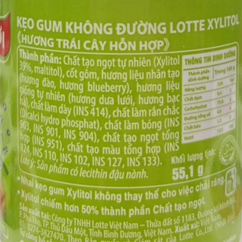 Kẹo Gum Lotte Xylitol Không Đường Vị Trái Cây Hỗn Hợp Hũ 55.1G